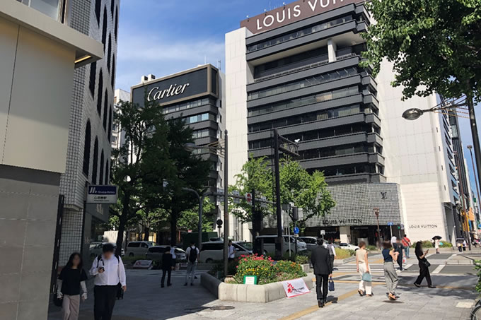 地上に出ましたら、突き当りの交差点を左に曲がって北へ直進して下さい